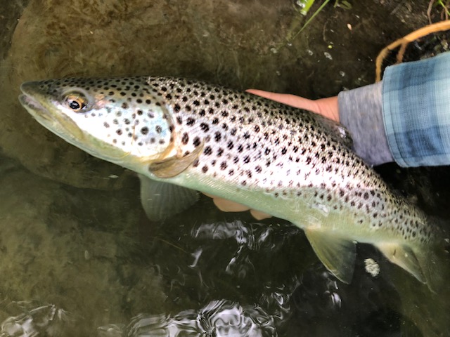 Je rate une 1re au ferrage. Je repère un autre gobage, mais là c’était un steak. La même que je décroche hier au même endroit. Elle m’a gobé le rusty sous mon nez, à 4 m. Elle enchaîne 2 sauts au milieu du gave et je casse au noeud de la mouche 🤷🏻♂️